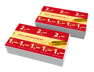 Die seit Jahrzehnten beliebten Taxiabonnements zum abreissen. Taxi-Coupons im Wert von CHF 11.– für CHF 10.–